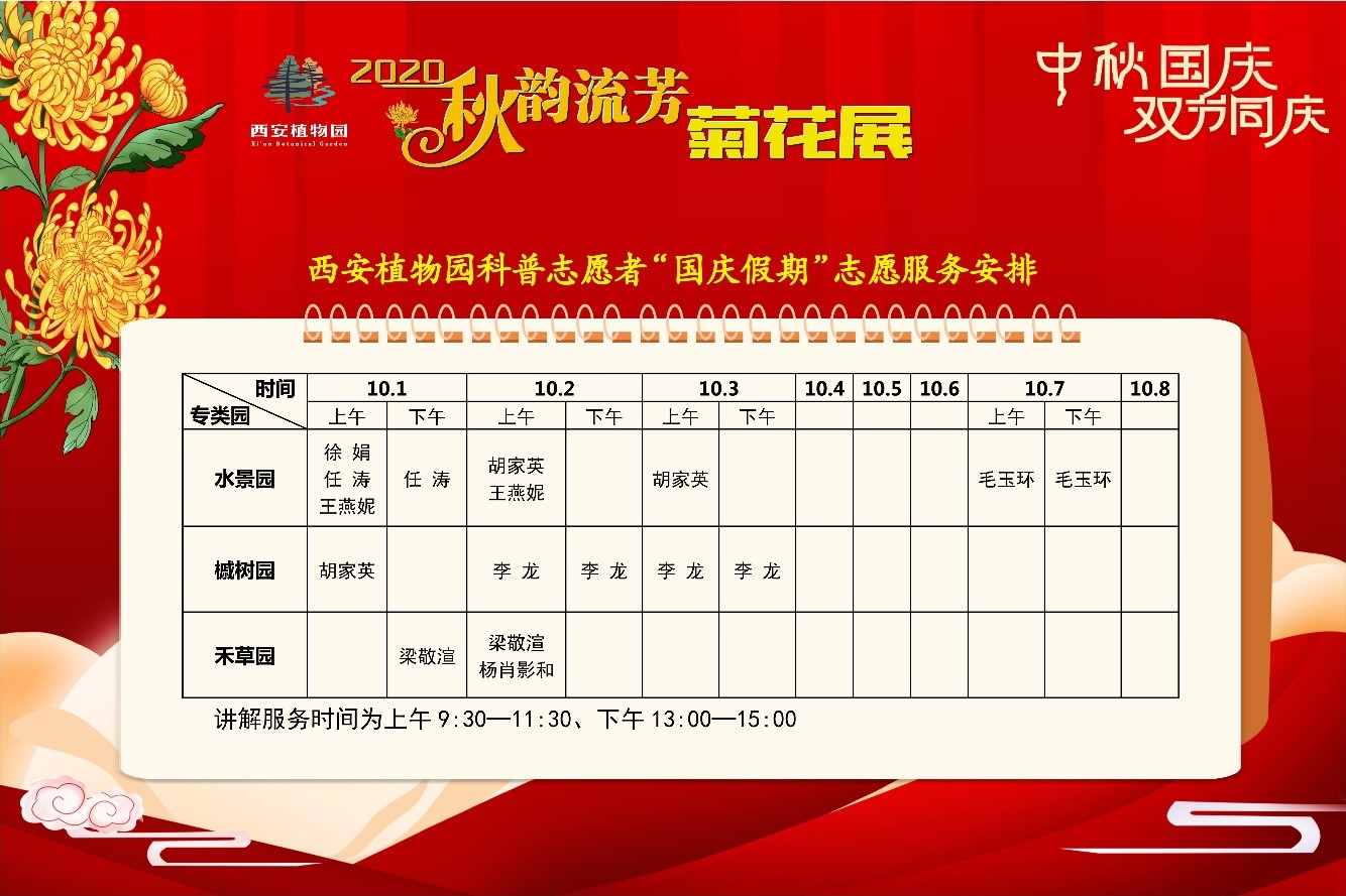 2020年10月陕西省西安植物园科普讲解志愿者服务信息公示