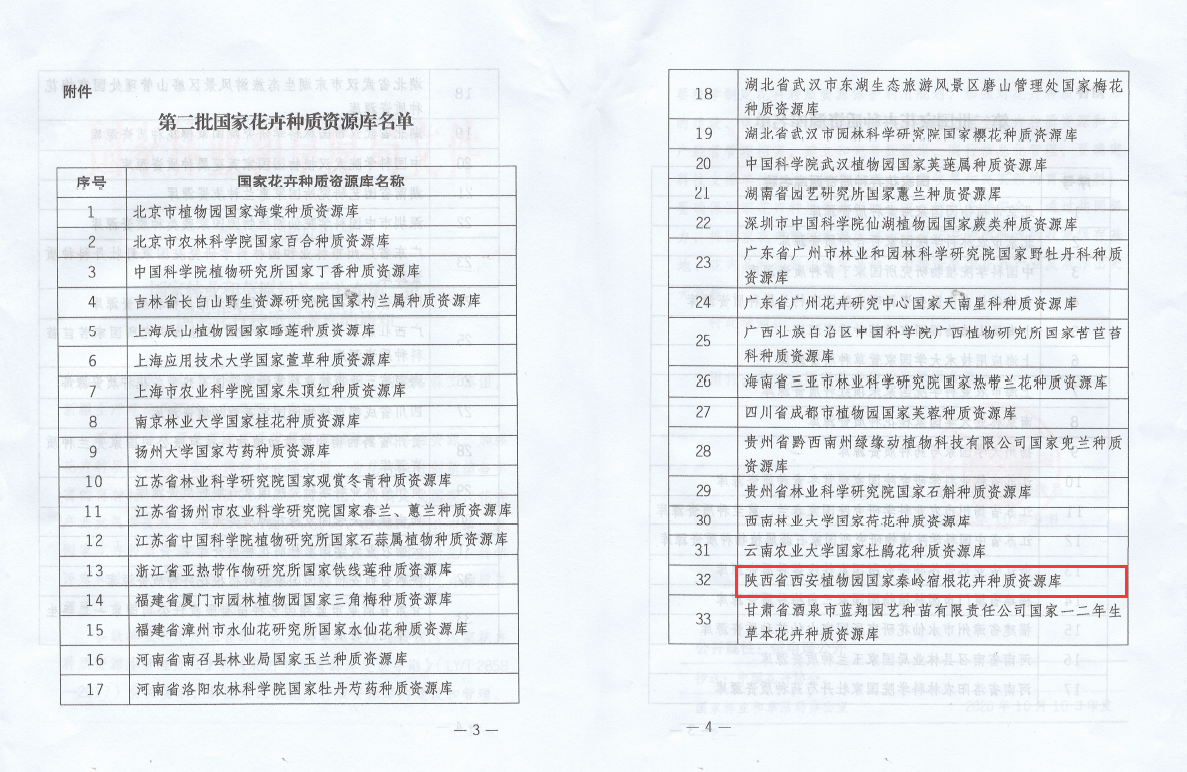 陕西省西安植物园获批第二批国家花卉种质资源库相关文件