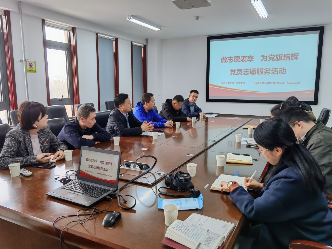 为弘扬“奉献、友爱、 互助、进步”的志愿精神,充分发挥党员在志愿服务活动中的示范引领作用,3月17日,陕西省教科文卫体工会党支部和陕西省西安植物园综合党支部、科研二支部,在西安植物园新区联合开展了“做志愿表率 为党旗增辉”党员志愿服务活动。