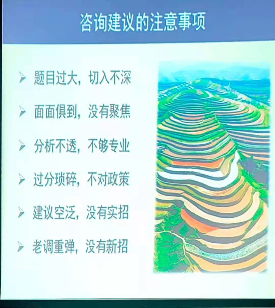 上官周平研究员的报告详细介绍了科技咨询报告的选题标准、工作流程、注意事项等,通过“粮食安全”和“淤地坝”两个国家级咨询案例,分享了从承??蒲邢钅康奖ǜ娉晌闹练蠢〔赡芍涞墓?,并勉励我园科研人员结合研究基础积极开展科技咨询报告撰写。