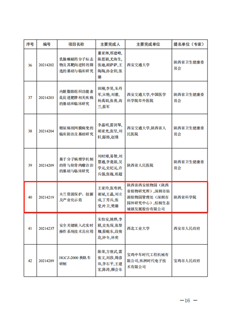 2022年3月29日,陕西省人民政府网站发布了陕西省人民政府关于2021年度陕西省科学技术奖励的决定(陕政字〔2022〕21号),我园王亚玲研究员团队成果“木兰资源?;?、创新及产业化示范”项目喜获陕西省科学技术进步二等奖。