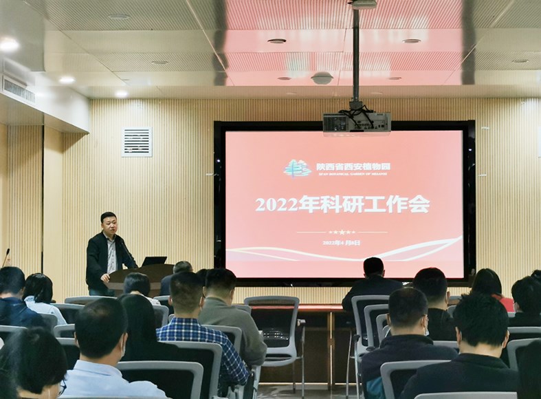2022年4月8日,西安植物园2022年科研工作会议在植物园新区一楼会议室召开,园副主任刘立成主持会议。园领导班子成员,各团队带头人、副高职称以上人员、博士及财务人员等四十余人参加会议。