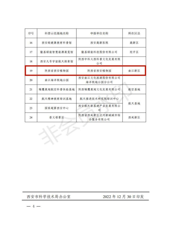 近日,根据《西安市科普示范基地认定管理办法》(市科发〔2022〕104 号)有关规定,市科技局联合市科协开展首批西安市科普示范基地认定工作,在各区县、市科普联席会议各成员单位推荐的基础上,经评审,24家单位被认定为首批西安市科普示范基地。其中,陕西省西安植物园榜上有名。