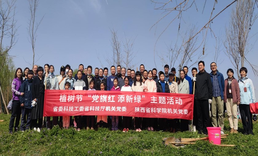 2023年3月12日,在第45个全民义务植树节之际,为深入贯彻党的二十大精神,落实习近平生态文明思想,积极践行“绿水青山就是金山银山”的生态环保理念,由陕西省科技厅机关党委和省科学院(中科院西安分院)机关党委联合开展的“党旗红 添新绿”植树志愿活动在我园举行,陕西省科技工委、陕西省科学院机关党委和院属研究所干部职工代表50余人参加本次活动。