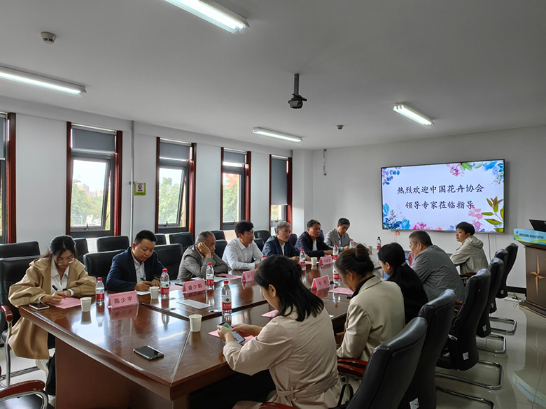 岳明主任首先对张引潮秘书长的到访表达了诚挚欢迎,并从单位发展历程、园区建设、种质资源、人才队伍、科学研究、科普教育、基地平台等方面对我园基本情况进行了介绍。李艳对我园种质资源库的资源收集、迁地保护、栽培繁育和展示效果等进行了全面介绍。张引潮秘书长对我园秦岭宿根花卉种质资源库的工作进行了充分的肯定,并希望我们抓住国家推进花卉产业高质量发展的契机,针对市场需求,与企业合作,加大转化力度。