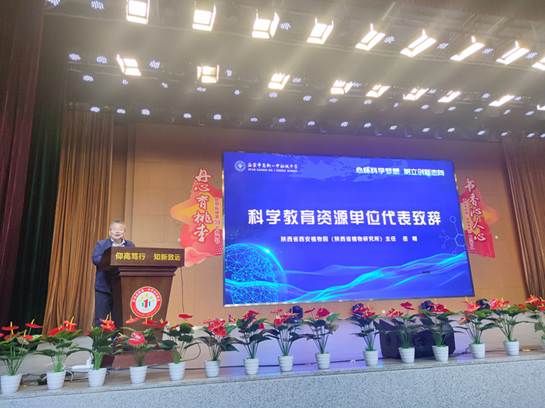 陕西省西安植物园作为具有植物科学研究、植物种质资源收集保存、科学普及等职能的科研机构。陕西省西安植物园主任岳明从植物园作为国家战略科技力量的使命和担当以及西安植物园发展定位出发,对科教融合、打造高水平青少年创新教育平台提出了希望,表示拔尖创新人才的早期发现和贯通培养是一个持续性的过程,需要双方的合作与共同努力,植物园今后将充分利用优势学科人才资源和专业化科研团队,让“小研究员科创基地学校”成为一个有科研人员陪伴,共同探索科学奥秘的平台,成为激发青少年热爱科学、勇于创新的舞台。