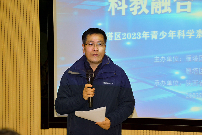 活动上,西安市雁塔区科工局二级调研员谭戈表示,要把培养和提高青少年科学技术素质作为重要的战略任务,坚持教育、科技、人才“三位一体”,加强实施校内外科学教育资源衔接行动,搭建平台支持中小学与高校、科研院所联系,鼓励科研院所和高校主动对接引领中小学科学教育。雁塔区教育局体卫艺科科长王运刚指出,青少年是国家和民族的未来,加强青少年的科学素质培养是提升国家核心竞争力的重要举措。希望各有关部门、广大科技工作者和教育工作者深入探寻科教融合新思路、新模式,扩大科教融合的‘接触面’,给学校拔尖创新人才培养注入强劲动力,培育出更多具有创新能力、严谨治学能力的青少年群体。