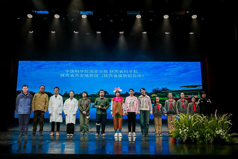 12月19日是第二批剧目展演日,我园原创科普短剧《消失百年的冬日精灵》主创参演人员有张宇军、王琪、王雅婧、谢斌、路强强、王妍雯、司鹏宏、杨璐瑶、陈娇、商慧颖和远东实验小学5名师生等??破站绻?span lang="EN-US">5幕:美丽的报春精灵、初见的故事、再现秦岭山脉、消失百年重新绽放古城西安、科研助力野化回归。剧情展示了珍稀濒危植物陕西羽叶报春从发现、灭绝再到重现的传奇历程,我园科研人员为?;ど挛饔鹨侗ù?,从引种驯化到野化回归所做出的不懈努力。通过对陕西羽叶报春引种繁育和迁地?;さ姆绞皆谖靼仓参镌澳诔晒欣┓保⒃诖嘶∩献橹股挛饔鹨侗ù旱囊巴饣毓槭匝?,全力?;け粑V参锷妗U瓜至?span lang="EN-US">60多年来,植物园人心怀“国之大者”,秉承科学家精神,立足国家发展和地方需求,全心投身生态文明建设,在生物多样性研究?;び肜?、园林园艺技术研究与推广、植物科学普及等方面长期坚守、默默奋斗,切实守护好秦岭生态空间的一山一水、一草一木。