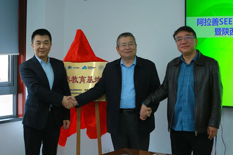 在与会人员的共同见证下,西安植物园主任岳明和西安市企业家环保基金会理事长王辉签署了“陕西羽叶报春野外回归项目”资助协议。并与阿拉善SEE西北项目中心邹斌主席和西北大学生命科学学院魏宁副书记共同为自然教育基地揭牌。
