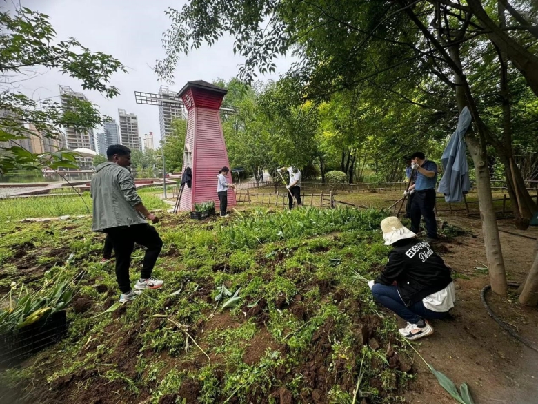 一大早,各支部在指定区域统一集合,在园艺中心和运营中心的组织下,党员们佩戴党徽,手持铁锹、小锄头等工具前往所属的区域进行郁金香采挖,大家充分发扬不怕脏、不怕苦、不怕累的精神,在埋头苦干的过程中,有的同志手上磨出了水泡,汗水湿透了衣服,但这一切都没有影响到大家的劳动热情,现场秩序井然,大家相互配合,一致协作,在欢声笑语中,大家还“偶遇”了各色的青蛙,不时“打扰”在泥土中做美梦的各色虫子......