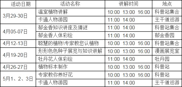 2014春季花展期间,西安植物园科普活动安排如下: