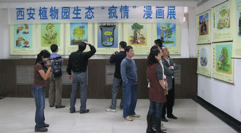 2014年3月22日到5月10日,西安植物园在科普展厅内再次展出60幅生态“疯情”漫画,同时展出的还有许多精美的昆虫与植物图片。