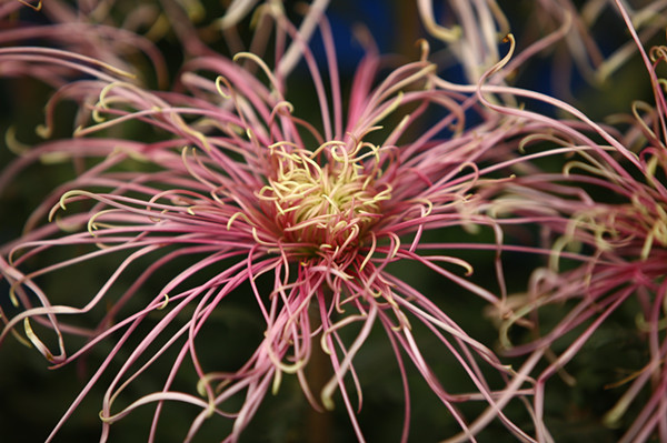 当您在蝶恋花展厅中对着色彩缤纷、艳丽的荷兰切花菊连连赞叹时,我国传统的菊花也以整齐的姿态盛装迎宾。此次新参加展览的传统菊花有多头菊、独头菊、案头菊共计200多个品种,除了和切花菊一样拥有优美的花型,传统菊花更呈现出飘逸的姿态、别致的古意和淡雅的风骨。展厅内的菊花可谓是一中一西,风格迥异,相映成趣,流光溢彩,令人耳目一新。