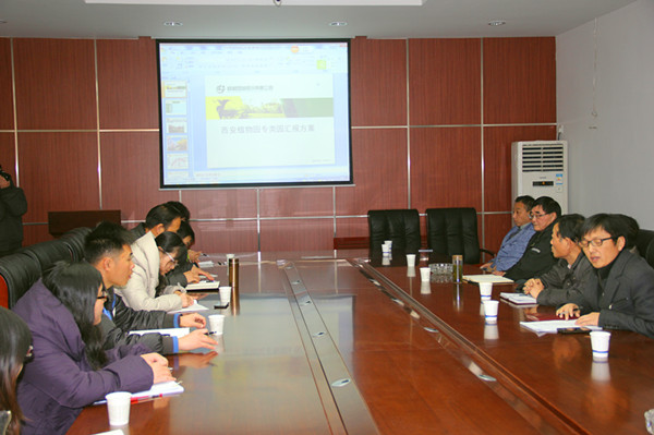 2015年1月19日至20日,棕榈园林股份有限公司研究院常务副院长刘坤良及设计团队来我园进行新园区专类园深化设计汇报。会议由西安植物园副主任杨群力同志主持,党委书记上官建国同志、新园区建设负责人杜勇军、各专类园建设小组组长以及部分参与专类园建设的工作人员参加了本次会议。