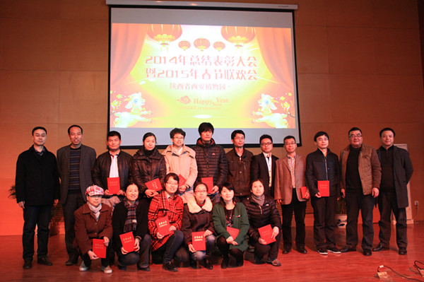 西安植物园党委书记上官建国在会上作了西安植物园2014年度工作总结。副主任杨群力宣读了先进集体及先进个人获奖名单,上官建国等领导为先进集体及先进个人颁发了奖状及证书。