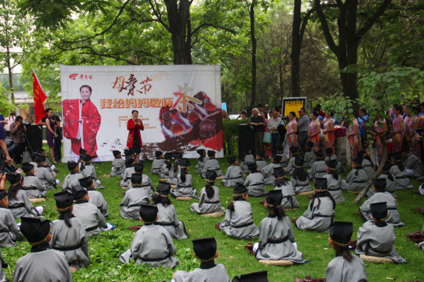 5月10日,西安植物园与《华商报》“华商生活学院”联合举办母亲节活动“我给妈妈敬杯茶”,通过华商报平台报名而来的200位母亲和小孩共同参加了活动。 敬茶活动分为上下午两场,西安润三才茶文化传播有限公司的金牌茶艺师周瑾带领30位茶艺师为身穿汉服席地而坐的孩子们讲解了中国源远流长的茶文化,并手把手的教孩子们茶具的用途和冲泡方式,以及为母亲敬茶的礼仪,在周老师的循循善诱下,孩子们都亲手为母亲奉上了茶水,感谢母亲的养育之恩。敬茶活动后,小朋友们和家长在工作人员的带领下游览了西安植物园园区。