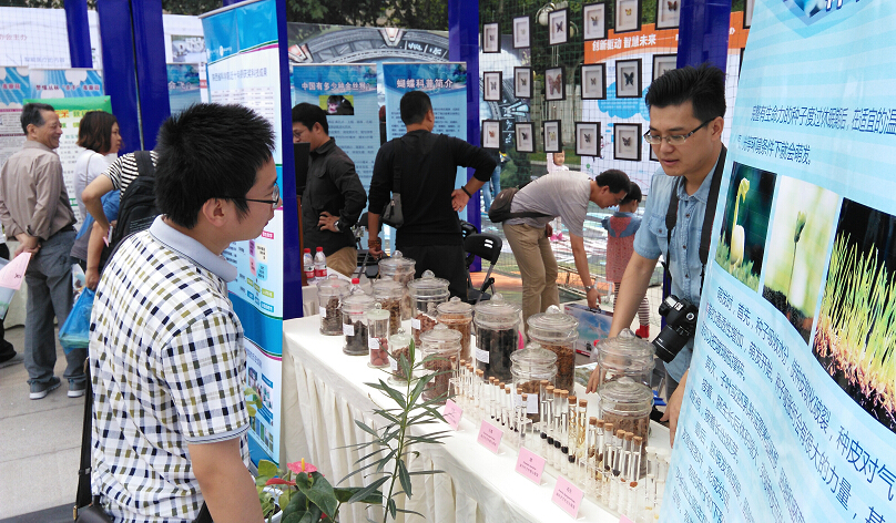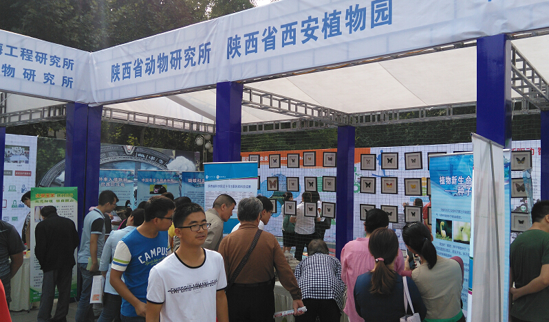 在陕西省西安植物园展台,展示了不同形状、体积、颜色、特征的形形色色的植物种子,展示了单子叶和双子叶种子的发育生长过程及其形态变化过程。同时展示了家庭及户外常见的有毒植物,普及教育儿童及市民不要随手采摘花草入口食用,以免出现误食中毒现象。另外还展示了我园蝴蝶课题组收藏的世界珍稀名贵蝴蝶标本50余种,科普了蝴蝶的基本知识,介绍了蝴蝶的形态结构、蝴蝶生活史及蝴蝶与蛾子的区别等。