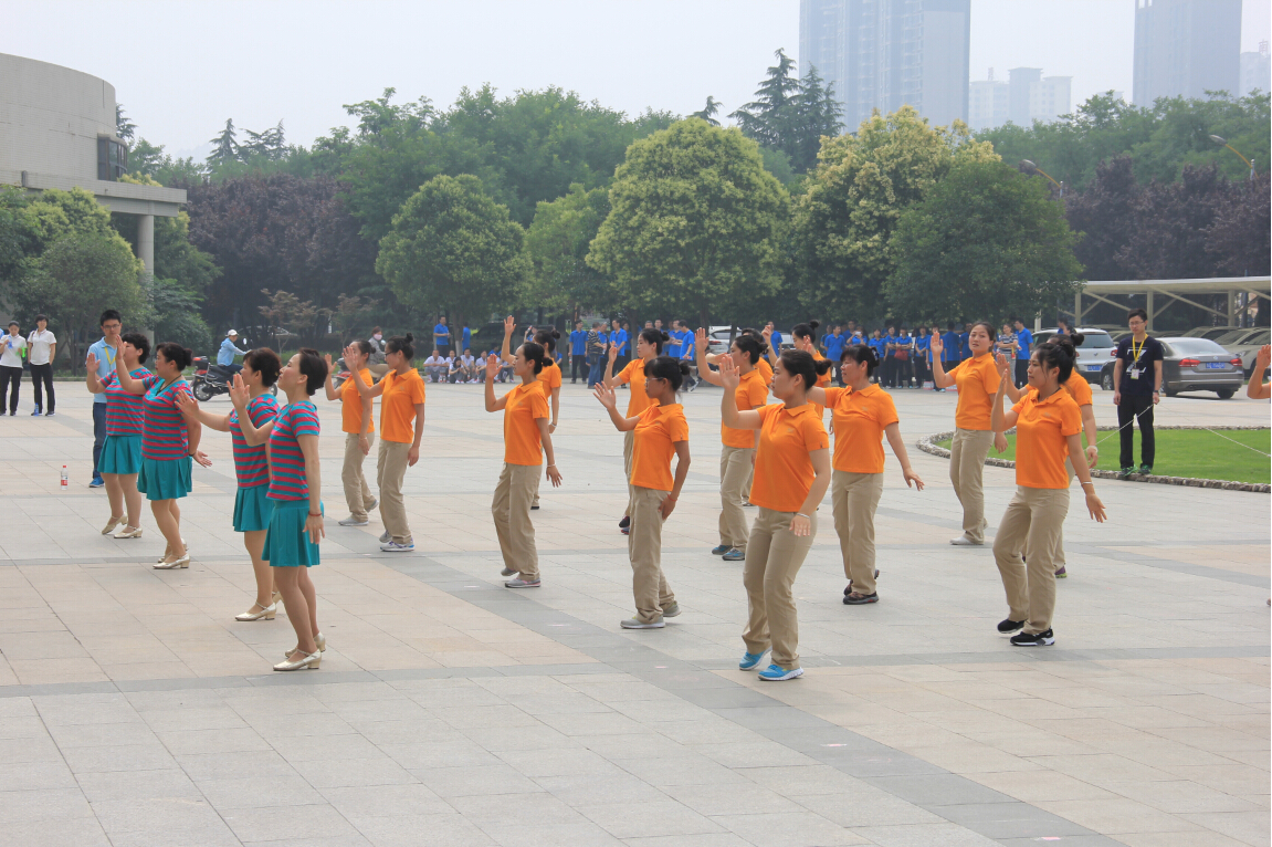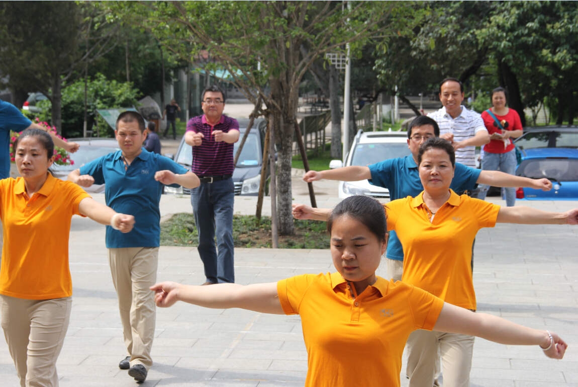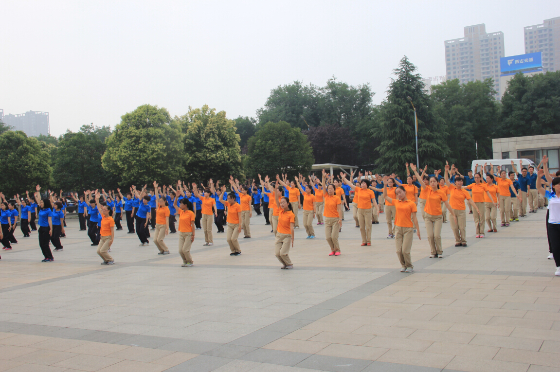2016年6月7日,在西安植物园办公楼前,在上官建国书记、杜勇军副主任、刘立成副主任带领下,进行了第九套广播体操的展示活动。