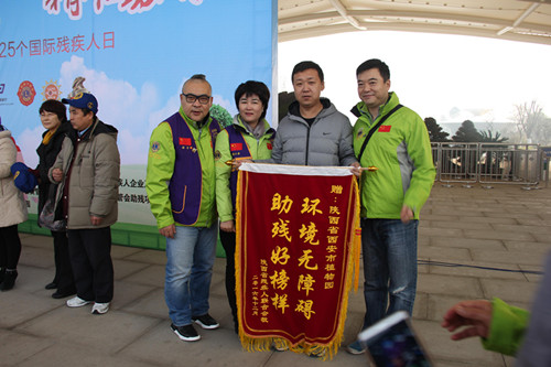 为感谢西安植物园在助残公益事业等方面所做出的努力和贡献,文萍主席代表五大专门协会特向西安植物园赠送“环境无障碍 助残好榜样”的锦旗并呼吁大家加入助残志愿服务中来,以实际行动温暖身边的残疾人群。