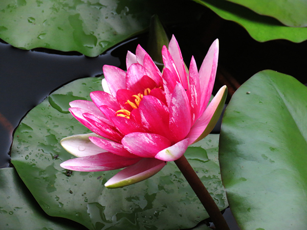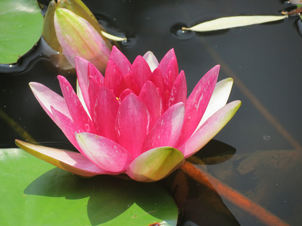 ‘天赐’属于睡莲中的耐寒的中大型睡莲型,在北方冰下泥中可安全越冬,它的叶片呈绿色,花浮水而开,红色花瓣上随季节出现不规则白色斑块,具有水果香味,花期为4-10月,是水景园美化和水质净化的好材料?!齑汀肭妆镜牟煌阒饕硐衷诨ò晁婕窘诔鱿植还嬖虬咨呖?,经过5年的无性繁殖观察,性状稳定,色斑的出现具有规则性,一般出现在晚春夏初等季节。
