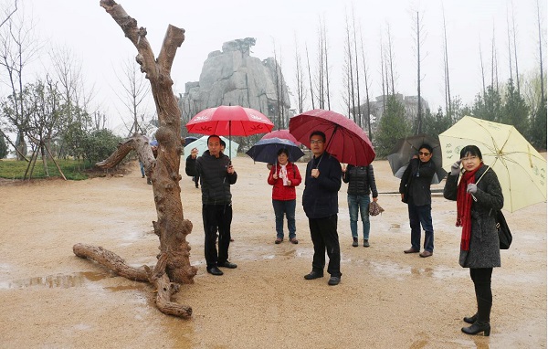 淅沥沥的春雨在春寒料峭中逐渐演变成了漫天飞舞的雪花,满园的植物纷纷在逐渐回暖的春意中小作蛰伏,仿佛在蓄势待发的生机中迎来了一次检阅。在植物园杜勇军副主任、杨群力副主任以及其它科研人员的陪同下,党双忍副厅长一行三人,冒着雨雪对园区进行了实地考察。期间,杜勇军副主任向党双忍副厅长介绍了新区整体规划、专类植物收集以及植物园未来发展等情况,党双忍副厅长不时地与在场的科研人员进行交谈,并就相关问题进行了讨论。