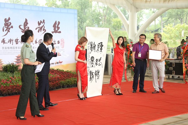 西安植物园领导为李羊民先生颁发聘书、李羊民先生向植物园赠送礼物