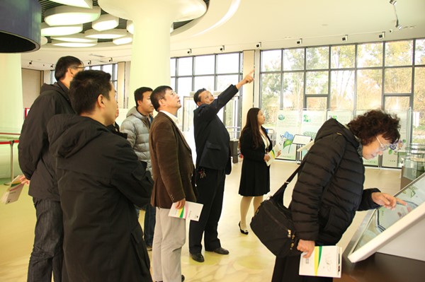 (西安植物园副主任刘立成、总园艺师马延康等人陪同专家组一行考察植物园的游客服务中心)
