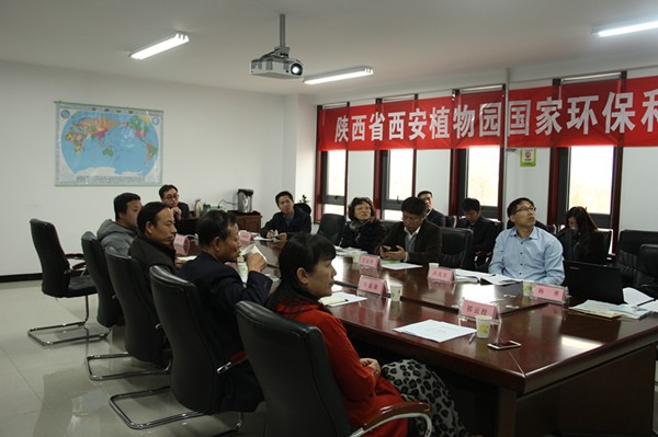 (西安植物园常务主任杜勇军、副主任刘立成等人听取专家组提出的发展建议)