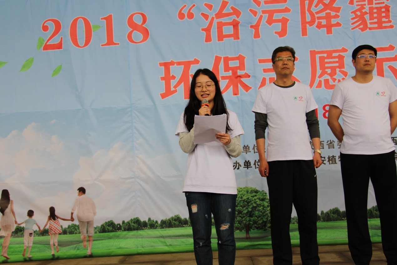 2018年4月22日,由共青团陕西省委、中科院西安分院、陕西省科学院主办,陕西省西安植物园、中科院地球环境研究所联合承办的2018年 “治污降霾·青年先行”专项行动启动仪式暨首场示范活动在西安植物园新区举行。团省委副书记、党组成员鲁镇,中科院西安分院、陕西省科学院党组副书记孙传东,陕西省西安植物园党委书记杜勇军,团省委青年社会事业部筹备组副组长张路以及来自西安交通大学、西北大学、西安建筑科技大学等单位的青年环保志愿者代表,共计200余人参加了活动。