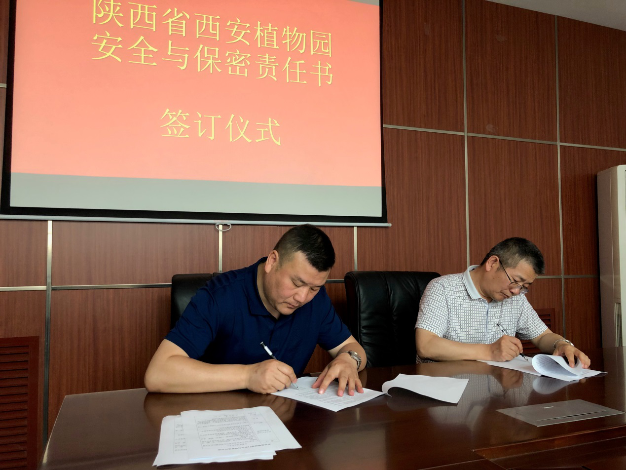 为进一步落实安全与保密工作责任制,切实提高中层领导干部安全保密意识, 5月20日,陕西省西安植物组织签订《陕西省西安植物园安全与保密责任书》,西安植物园主任岳明、党委代书记杜勇军以及各部门负责人参加了签订仪式。