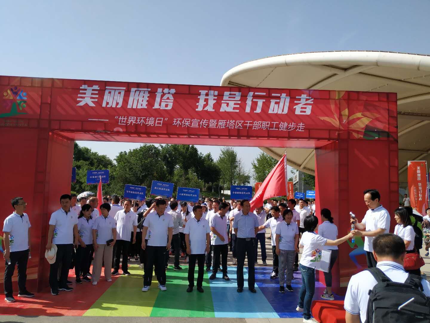 2019年6月2日上午,雁塔区政府机关及辖区各街道办职工300余人在陕西省西安植物园开展“美丽雁塔,我是行动者”健步走活动。为世界环境日宣传活动和践行绿色环保理念增光添彩。