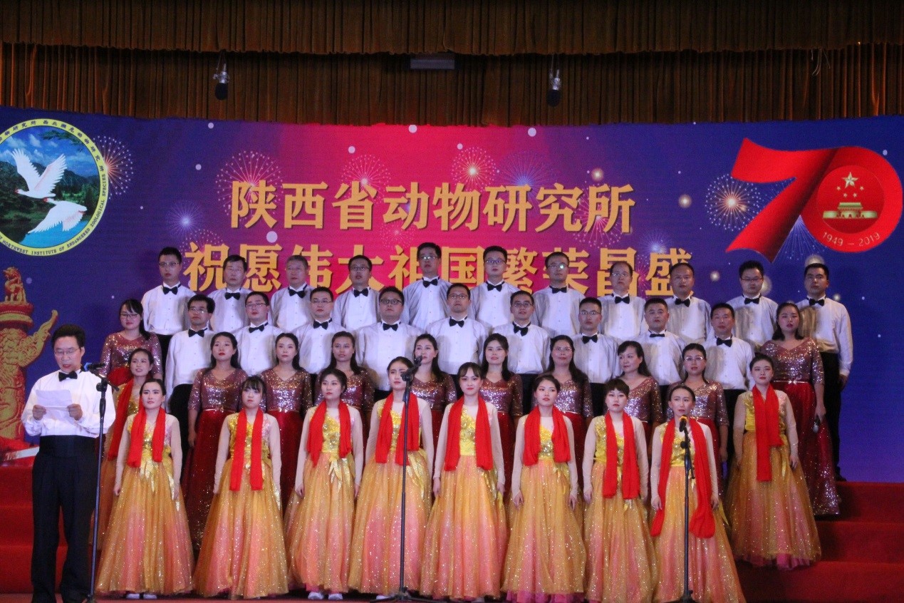 西安植物园的表演在园主任岳明教授的开场白中开始,岳主任深情的回顾道:“2019年既是新中国和中科院成立70周年,同时也是陕西省西安植物园成立60周年,植物?;ぁ⒖蒲а芯?、科普教育,三管齐下,联创佳绩;国际标准、西北一流、三秦特色是我们奋斗的目标,今日欢聚一堂,放声高歌,捧出火热衷肠,唤起报国壮志”。合唱队员用深情的歌声表达了对祖国的无限热爱和对实现中国梦的无限憧憬。