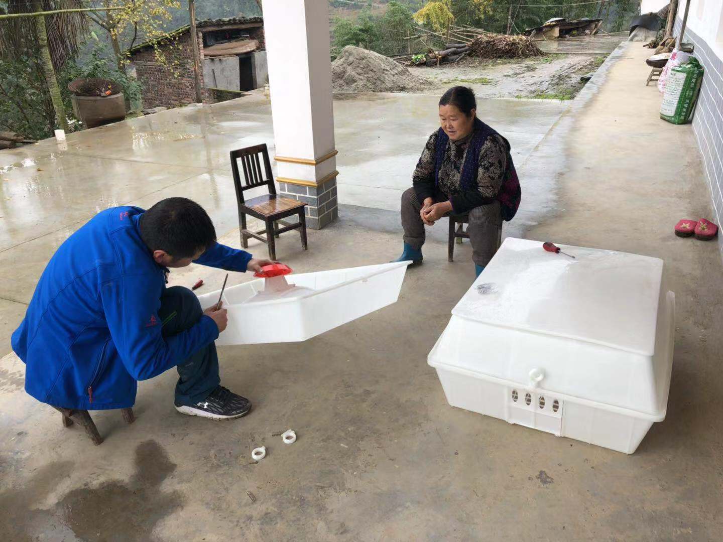 帮助贫困户安装鸡笼