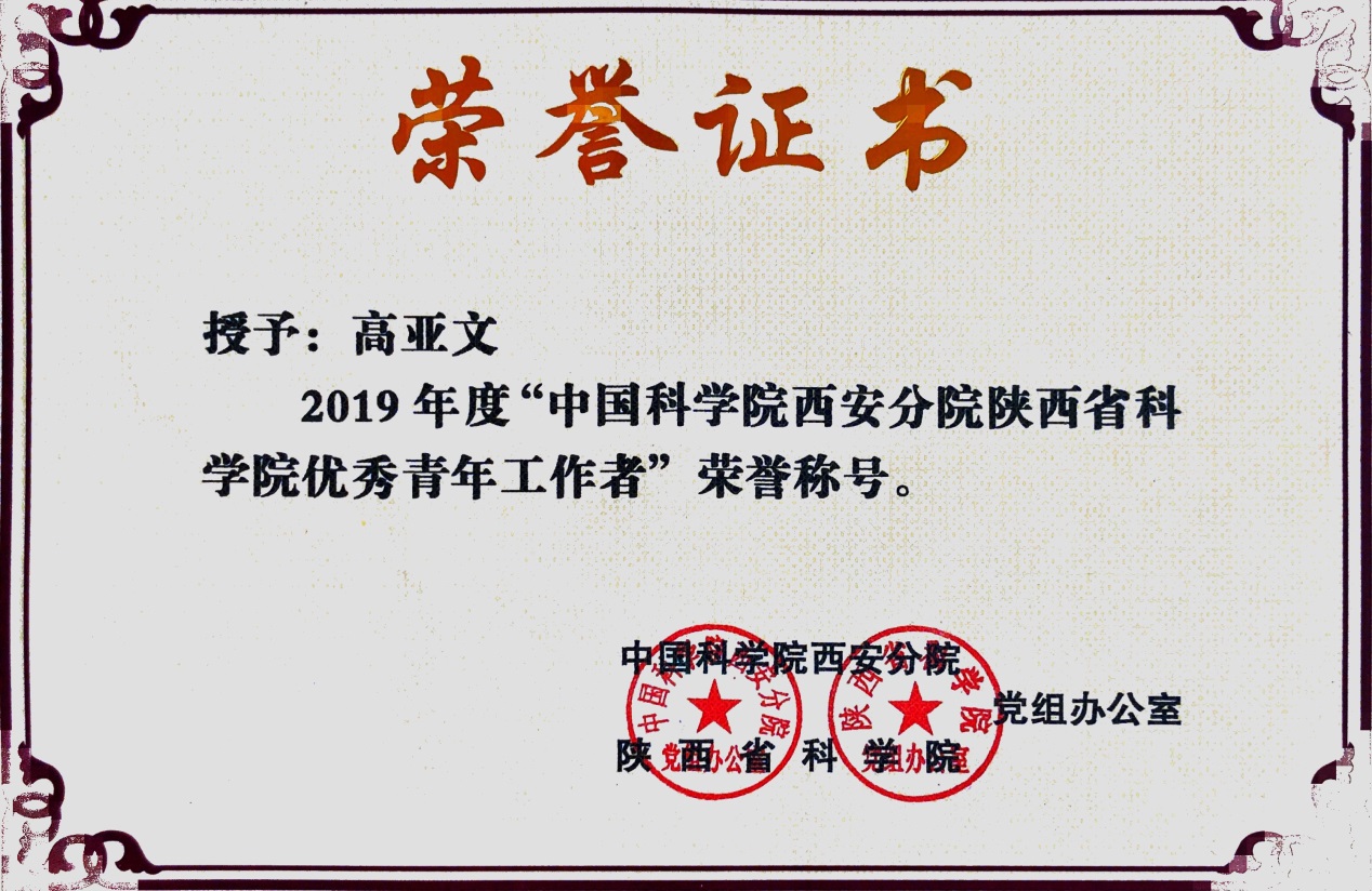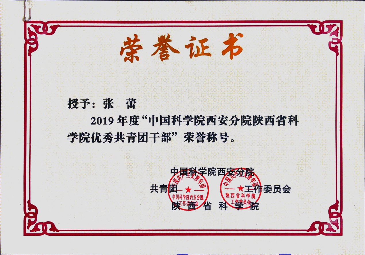 近日,中国科学院西安分院、陕西省科学院团工委印发《关于表彰2019年度“优秀共青团员”“优秀共青团千部”“五四红旗团委”“优秀青年工作者”“优秀青促会会员”的决定》,我园张蕾荣获分省院2019年度优秀共青团干部荣誉称号,胡浩和高亚文两位同志荣获2019年度优秀青年工作者荣誉称号,卜洁荣获优秀共青团员荣誉称号。