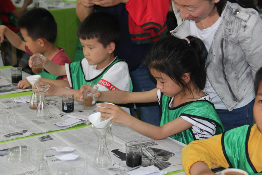 讲座结束后,家长和孩子们走进了陕西省科学院土壤资源与生物技术应用重点实验室。在开放的实验室与科研人员面对面,观看试验演示,让大家能够近距离接触科学,给孩子们带来了一席色香味俱全的科学盛宴。而在为孩子们准备的科普活动中,“神奇”的科学实验成功俘获了大家的眼球。随后,孩子和家长们便一起体验了“奇妙的土壤世界”,通过自己动手了解到了土壤中是有酸碱性的,也认识到了土壤在环境中的净化作用等等那些我们不知道的土壤秘密。