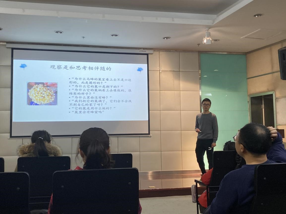 在讲座开始前,西安植物园的松塔老师先给孩子们展示了一些有趣的大自然图片??醋叛矍把だ枚嗖实耐计?,大家被深深吸引,对身边的大自然充满好奇。这时,松塔老师告诉大家:想要更好地了解和观察大自然,就要从制作自然笔记开始。那什么是自然笔记呢?老师展示了几幅其他小朋友制作的自然笔记,上面有文字,也有图画。老师告诉大家自然笔记其实就是对动植物以及大自然的观察日记,包括观察的时间、地点、天气情况,所观察的动植物名称、手绘的动植物图片、细节描述,还有你自己当时的思考。自然笔记还应该是连续的,不同的时间所显示出动植物的变化。它记录的不仅仅是你看到的景象,更是你对周围自然界的思考。