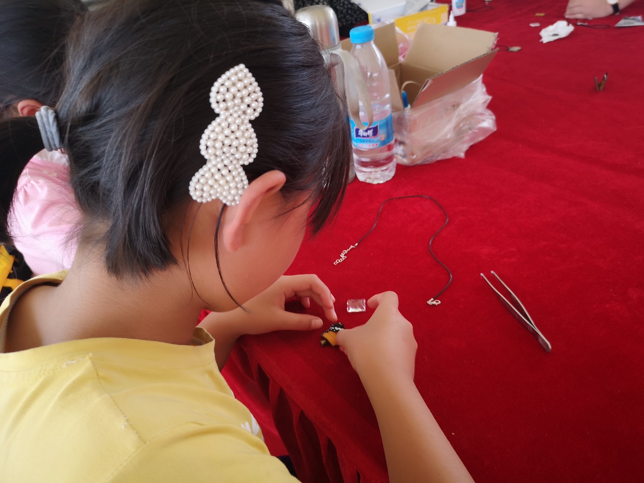 在品尝完美味的午餐后,“小葵花”们又跟随老师一起进行了有趣的互动游戏,通过分组PK增强了团队凝聚力和集体荣誉感。下午“小葵花”们学习了蝴蝶的一生,认识了美丽的蝴蝶是如何用它的生命来点缀着自然界,并且体验了手工制作蝴蝶吊坠,将美好的愿望和蝴蝶翅膀一起做成吊坠,留下了珍贵的回忆。