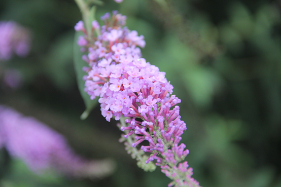 醉鱼草花冠紫红色或白色,集中开在枝头。盛花时节满树小花,散发出淡淡的清香,常常引来蝴蝶、蜜蜂的围绕,每一朵小花都朝着同一个方向,远远看起来,疏密有致,浪漫而动人。其茎则呈红褐色,凑近一看,宛如一个个毛细血管。
