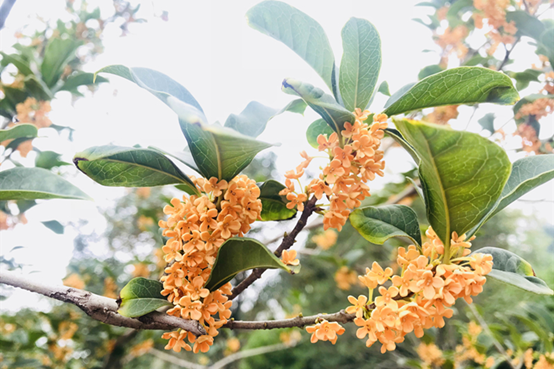 丹桂:开花时花色浅橙黄色至橙红色,香味极淡,只有凑近了才能感觉到一丝若有若无的幽香;