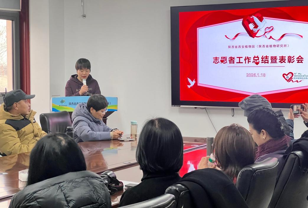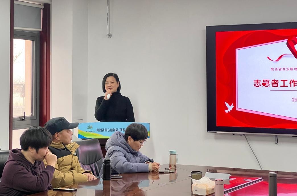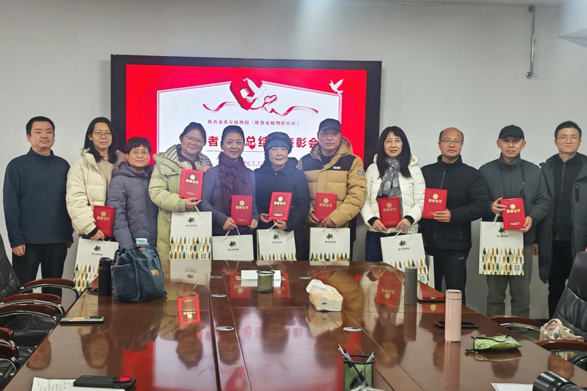 2025年1月18日,陕西省西安植物园举行了志愿者工作总结暨表彰会。会议全面回顾了科普讲解志愿服务工作成果,对表现突出的优秀志愿者进行表彰,并部署下一步志愿服务重点任务。陕西省西安植物园副主任韩桂军、科普宣教中心副主任谢斌、科研中心卢元、科普宣教中心全体成员及20余名志愿者代表参加会议?;嵋橛煽破招讨行闹魅握庞罹鞒?。