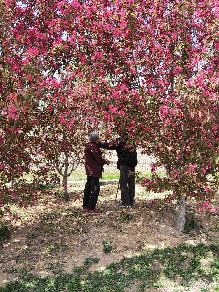 还未及触摸黄莹莹的迎春花,一片桃林便又将人裹挟。桃林中,两个步履蹒跚的影在花间隐现,偶尔听到喃喃之语,走近些,一位老太太再给拄着拐杖的老头拍照片,动作都很迟缓。老头还不停指挥着老太太,变换角度,换拍照片。我笑望着林间的他们,此刻这片桃林真的只有他们,掩映花间,怡然自得。春,是属于任何热爱它的人,就像生活属于热爱它的人一样。我侧身将自己也渐送入这桃林里,并不是要打扰他们,而是希望自己是不是可以有用给他们合个影,毕竟这样的日子于他们,还有几何?他们看到了我,老太太让我帮忙给老头拍照,说她视力不好看不清?!澳悄舱竟グ?,我给你们拍张合照。”我接过她手中的手机,拄着拐杖已经摆好姿势的老头站在一棵桃树下,有点一本正经,个头不低,年轻时也是个蛮有精神气的人?。±贤氛泻衾咸?,满头银发,一脸和蔼,个头不高的她摆摆手拒绝了,说老了不好看了。尽管老头看上去有些遗憾,却并不在勉强老太太。我完成了任务还过手机打了招呼转身离开,还是不去打扰他们的好。我弯腰往前,穿梭在桃枝间走了一段,这才直起腰来再看桃花真颜,名不虚传,远观近看它都那般迷人,桃花朵朵,蜜蜂忙不迭迟一头扎进去,触触这朵,碰碰那朵,不再是坐怀不乱的柳下惠了。忙乎得痴迷,忙乎得贪婪,薄薄的翅在阳光下透亮透亮的,一头扎进花心,空留屁股在外头。哈哈,花乱蜂心!路边有孩子喊叫:“好多的蜜蜂啊!”蜜蜂哪顾哪管,我那么近站在它们面前都全然不知,又怎会被吵到!