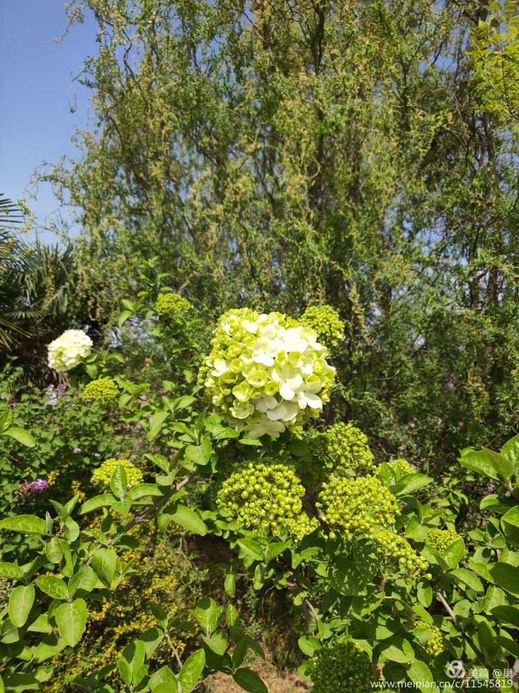 绣球荚蒾吸引着路过它身旁的人。它的花形是绣球状,颜色是黄绿色的,它的叶与花,是黄花还需绿叶伴的那种。花紧实地团在一起,确如绣球。它的旁边,一棵貌似光秃秃的树,近看枝头也有饱满的芽呢!身后有人说:“你看,这就是无花果树!定能结出繁而甜美的果实来,这里阳光多么充足”行家般的语气不容置疑,我透过那结实饱满的苞芽,似乎看到了甘美的无花果了。前面的假山上水流奔泻而下,笔直笔直的,中间有路可行,恰似水帘洞,游人在瀑帘中,宛若仙境,孩子欢呼不已,下面的给上面的抢拍镜头!假山那边的一簇锦鸡儿,金黄色的,形状和槐花极像,只是色彩华丽,我起初只当它是别一种槐花,不曾想人家有如此美的学名呢!
