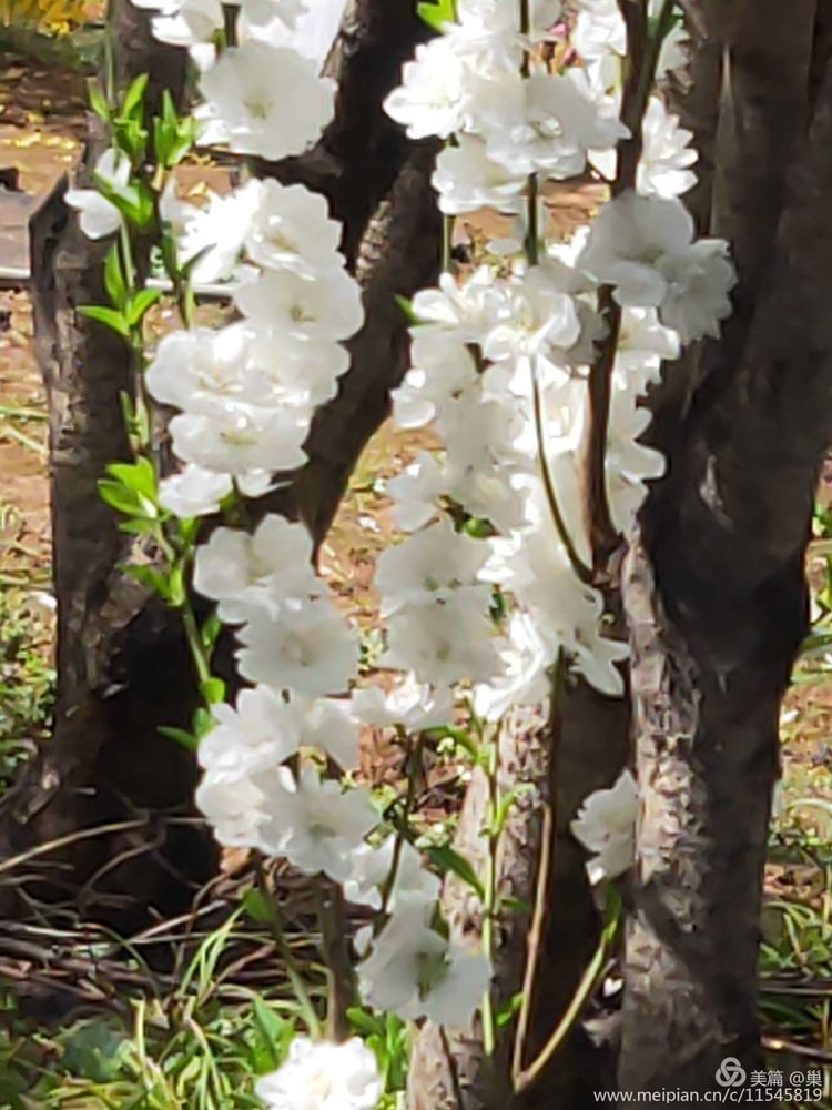 紫玉兰毫不逊色,即使枝头擎那么几朵,也十分醒目别致。白鹃梅被藏在深处,脚下是刚浇过水的泥地,不能近其身,洁白的一簇簇花朵相拥,像嗷嗷待哺的群婴,挤着露出小脑袋来,可它们又优雅很多,绢素得令人不忍碰触,只能远观,生怕是对那种白净的亵渎。原来,这里才是花海!百花齐放,姹紫嫣红。春风十里,花瓣飞舞,沉浸花香,便不知其味,落于草坪之上的各色大小花瓣,无人指挥,便自成绿地花毯,无需润色,一切皆是天然。人与花交织,但人在如此花海之中,声音连同气息几乎全然被淹没,留下的就是花色,花香还有微微春风……想必那浅浅上神最魅之处,依旧是在那片连绵不绝的桃花林中酣睡的样子了……树坑下的清清积水,盛满了桃花的花瓣,不仅没有黛玉葬花的悲伤凄美,反而是落花积水相得益彰的唯美境界!忍不住找一处坐下,就在干的土地上,花枝下,草地中。无论怎样的人,夹在这花海深处,他们都是美的,是那种被净化和浸染了的美。