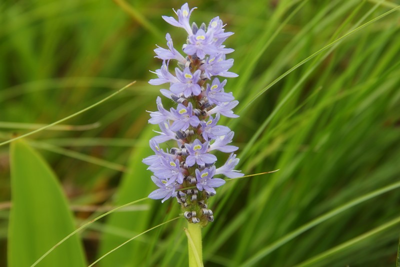 梭鱼草(Pontederia cordata)雨久花科、梭鱼草属,又叫北美梭鱼草、海寿花等。梭鱼草来自北美洲,在北美的水域里,梭鱼的幼鱼喜欢藏匿于某一类植物密生的叶丛与根茎间,在那里嬉戏游乐,俨然是它们的私人隐秘乐园。这种为它们提供隐密场所的植物就是由此而得名的梭鱼草了。