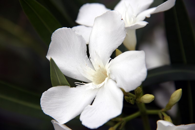 除此之外,夹竹桃还具有药用价值,是一味大有用处的中药。其叶、茎皮可提制强心剂,用时需慎重。白花夹竹桃的花香还能使人神经松弛,具有清神怡心的功效。最后还是要提醒大家一下:花虽美却有毒,大伙儿仅可远观,不可亵玩。
