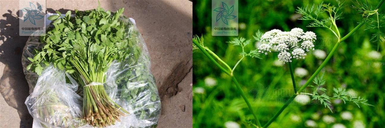 我们日常吃的芹菜,即旱芹(Apium graveolens)伞形科芹属,在中国的栽培始于汉代,至今已有两千多年的历史,栽种广泛,是百姓餐桌上的家常菜。改革开放后,西芹从欧洲进入中国,其叶柄肥厚,比旱芹个头大且产量高??晌蘼凼侵泄耘嗬方暇玫暮登刍故桥分夼嘤龅乃洞蟮奈髑?,食用的叶柄都是实心有明显纤维的,横切面可以很清晰的见到这些纤维;而水芹的叶柄茎杆则是空心的,柔软而没有明显纤维,显然口感更优。