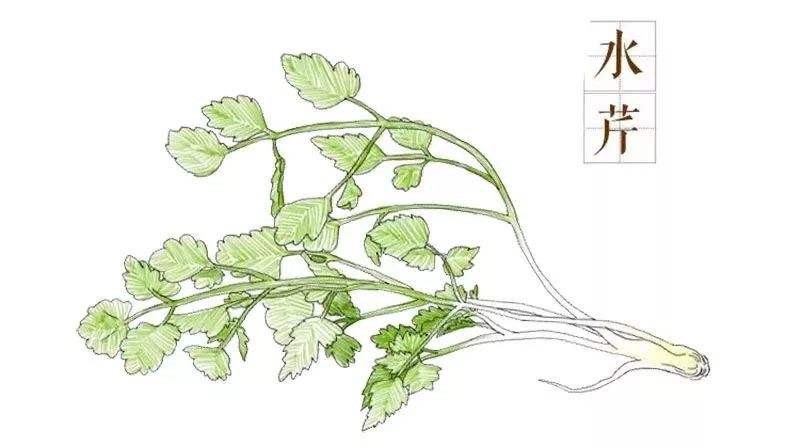 水芹古即称芹,在我国栽培历史悠久,是一种古老的健康蔬菜?!堵朗洗呵铩芳窃兀坛魈姥试紫嘁烈煜掠心男┟牢叮烈诨卮鹬刑岬健安酥勒?,云梦之芹”。云梦属于楚国旧地,而水芹“性冷滑如葵”,故又名“楚葵”。《诗经·鲁颂·泮水》云“思乐泮水,薄采其芹”、《诗经?采菽》有“觱沸槛泉,言采其芹”。可知在诗经时代,水芹即为常见的蔬菜。水芹也用以祭祀,《周礼?天官?醯人》所述:“加豆之实,芹菹免醯?!薄扒圯稀奔措缰频乃?。水芹也是一般老百姓家的常用蔬菜,如唐?白居易《过李生》“须臾进野饭,饭稻茹芹英?!薄斗庞恪吩疲骸皶匀仗嶂窭?,家僮買春蔬。青青芹蕨下,疊臥雙白魚?!?如唐?许浑《沧浪峡》:“红虾青鲫紫芹脆,归去不辞来路长?!被褂兴臻缎鲁堑乐小罚骸拔麽萌思矣ψ罾?,煮芹烧笋饷春耕?!闭獗闶撬鄣募页T现?,是居家的生计,有滋有味。而描写水芹菜最优美的,是诗人徐志摩的一篇散文:“水芹菜的全身都充满了一种特异的芳香,在小池塘抑或是小河旁,那一丛丛矮小的植株却有着诱人的景色,伞形细碎的白花,中空有棱的嫩茎……”看着看着,就让人心儿若蝴蝶般翩翩起来,仿佛飞到了那一片散发着奇特芳香的水芹身边。