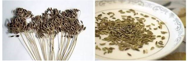 茴香和莳萝非常近似,相像到从叶至花基本上没有一个地方能把它们区别开的。想要从外观上区分这两种就只能等种子完全成熟干燥,这时我们能看出,茴香的分生果呈长椭圆形,有5条隆起的棱线,横切面呈五边形,种子表面呈黄绿色或淡黄色;而莳萝的瘦果呈扁平广椭圆形,除主棱外,两侧还有棱线延伸成翼状,种子表面呈棕褐色。而且茴香和莳萝的味道略有不同,莳萝的气味香甜比茴香更温和,有点类似奶油和芸香的味道,它的香型并不刺激,相反闻起来似乎能舒缓情绪。据中国植物志记载,莳萝的果实中可以提取芳香油,其中主要成分是香芹酮,为调和香精的原料。