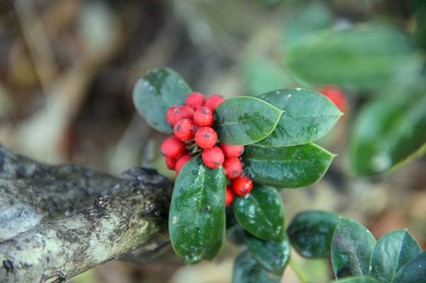 不得不说,无刺枸骨的美是发自内心的,红润的果实让人不由想起小女生扎头绳上的小红球,显得那么活泼可爱。在萧瑟的冬季里,随意在那遇见,都是一道让人无法忽视的温暖风景。