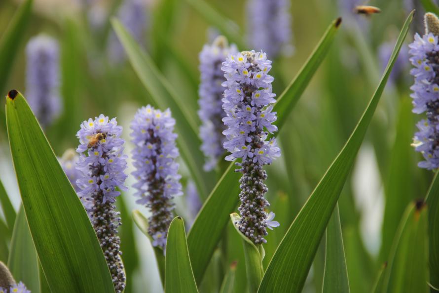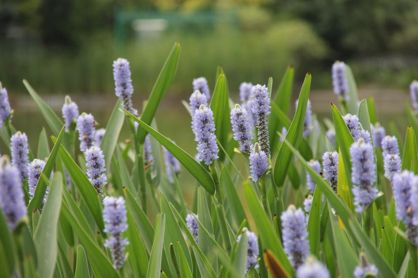 炎炎夏日,梭鱼草与荷花、睡莲交相辉映,那静谧的蓝紫色会带给人一片清凉,是难得的花叶皆美的水景花卉。不过,要欣赏梭鱼草请早晨去,傍晚朵朵小花就会收拢,看不到的。除了“美貌”之外,梭鱼草还对富营养化水体中的氮、磷均有较高的去除率,其中对于氨氮的去除率最高达96.2%。梭鱼草生物量大,吸收的氮、磷较多,具有良好的净水效果。
